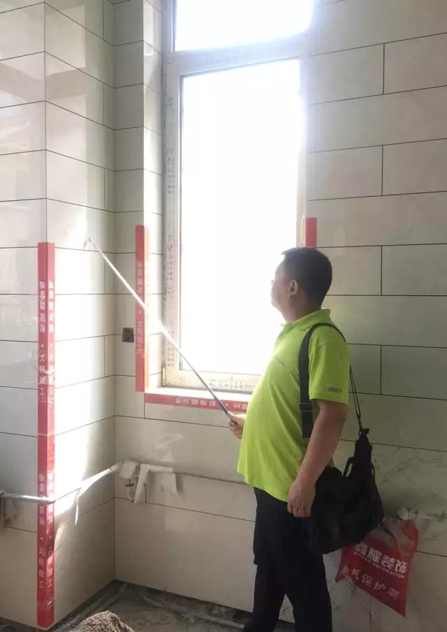 主材部張經(jīng)理正在做墻磚空鼓檢測