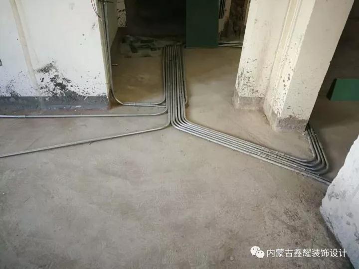 開槽布線垂直、清晰規(guī)范;水路改造上熱下冷,紅色管紅色綁帶,冷水管綠色綁帶;熔前管外套聚丙烯隔音棉做隔音處理....
